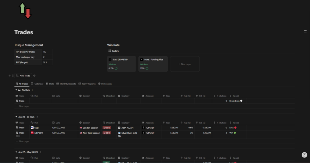 π Trading Journal PRO β The Ultimate Notion Trading Journal